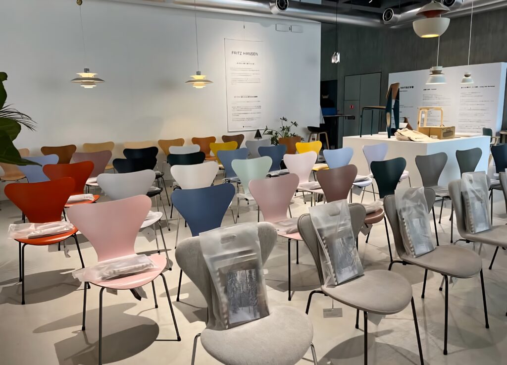 会場にはセブンチェアがずらりと並び、実際に座り心地を確かめながら学べる贅沢な時間でした。