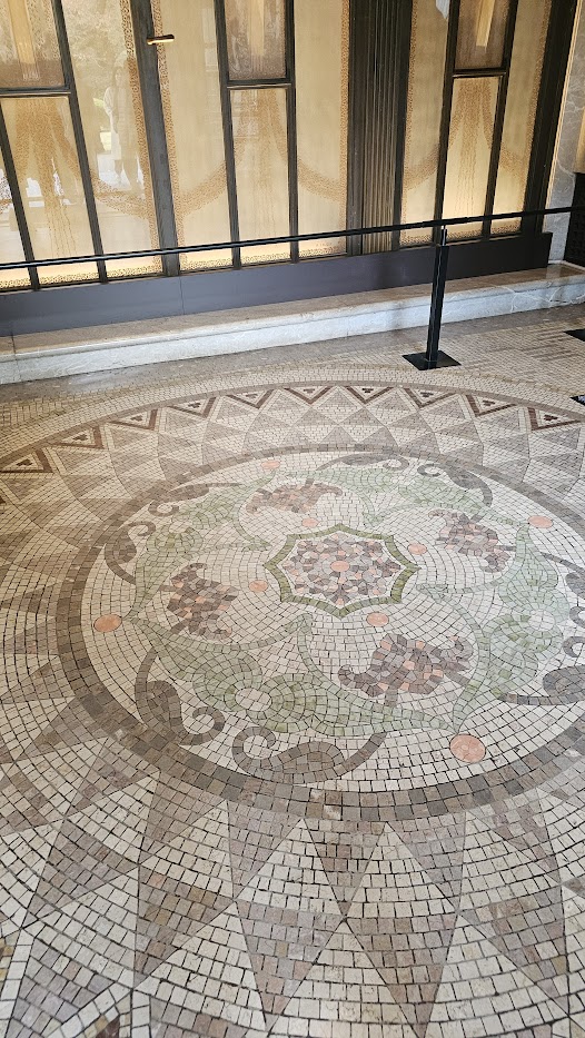 床のモザイクタイルは、曲線と幾何学が調和するアラベスク文様。