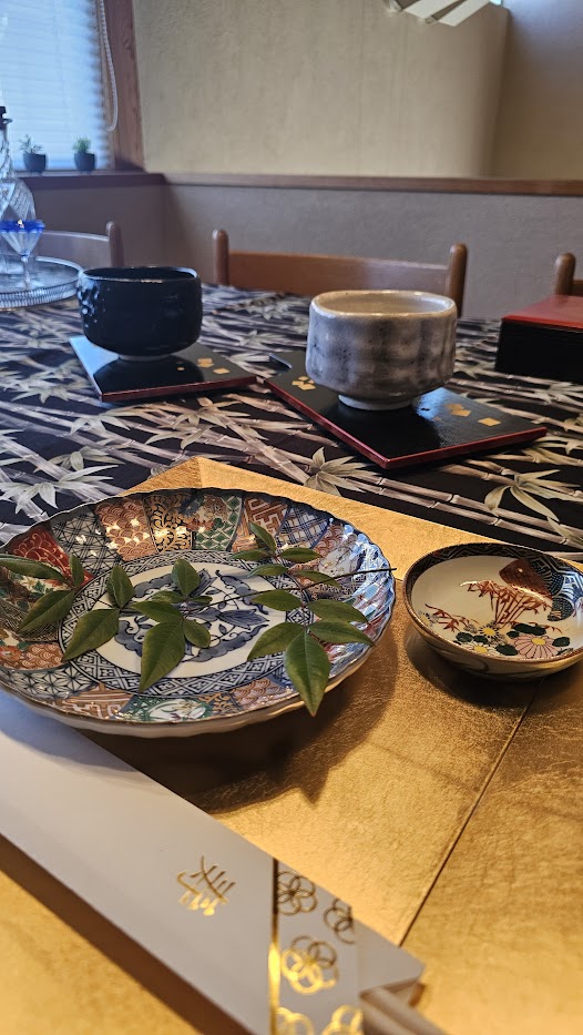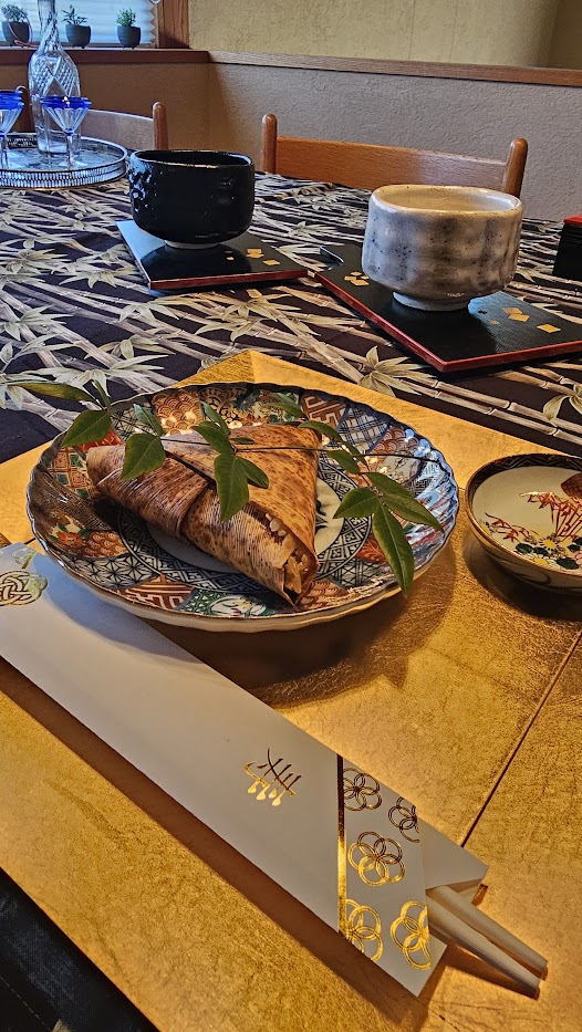 この日のテーブルには、中華ちまき、かぶ、紅まどんな、花びら餅、そして抹茶。