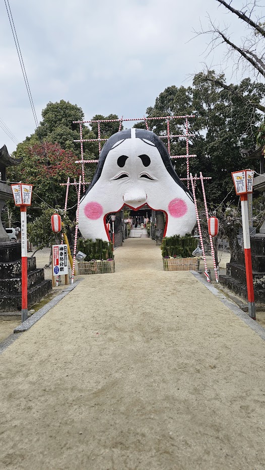 節分の季節になると、参道には大きな「おたふく門」が現れます。にっこりとやさしい表情の門をくぐると、「福を内へ、鬼を外へ」——そんな日本らしい願いが、空気の中にふわりと広がるように感じます。