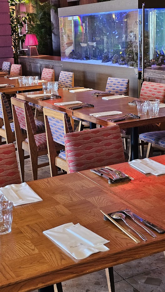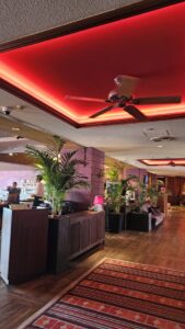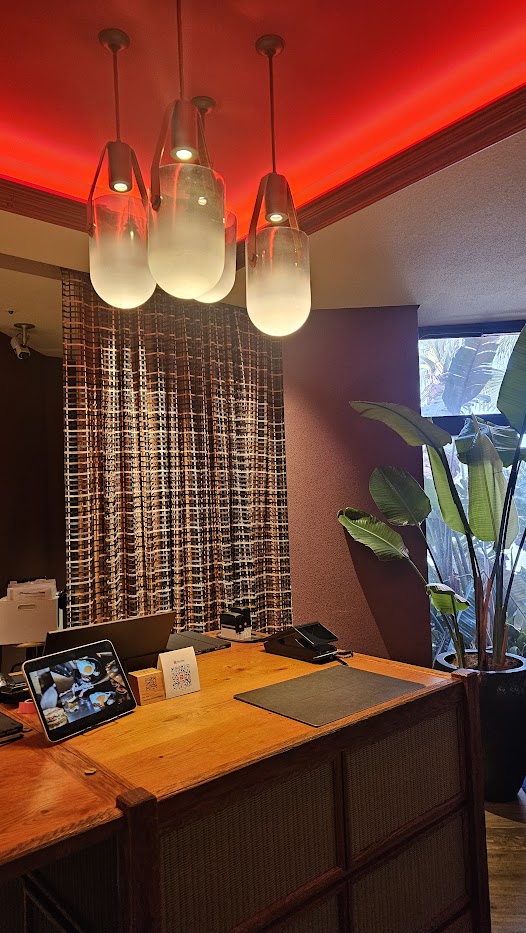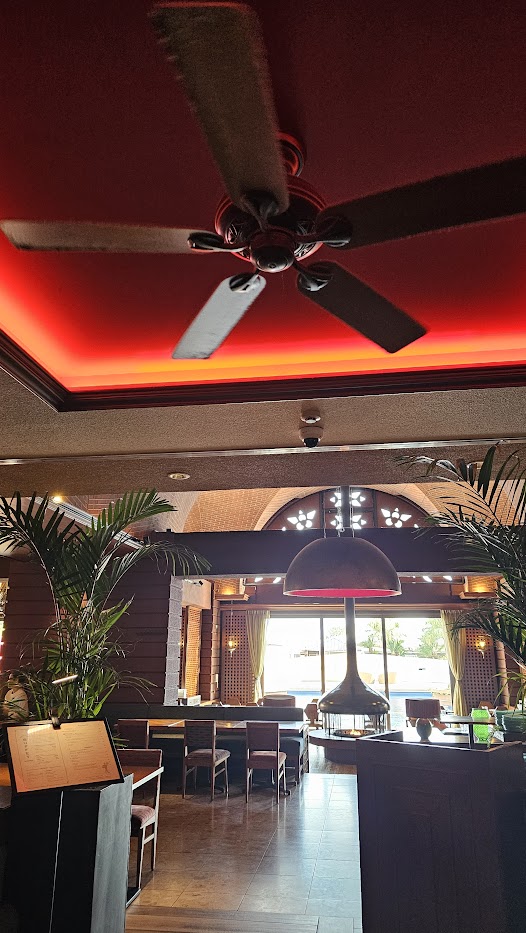 まず印象的だったのは、天井を染めるレッドの間接照明。